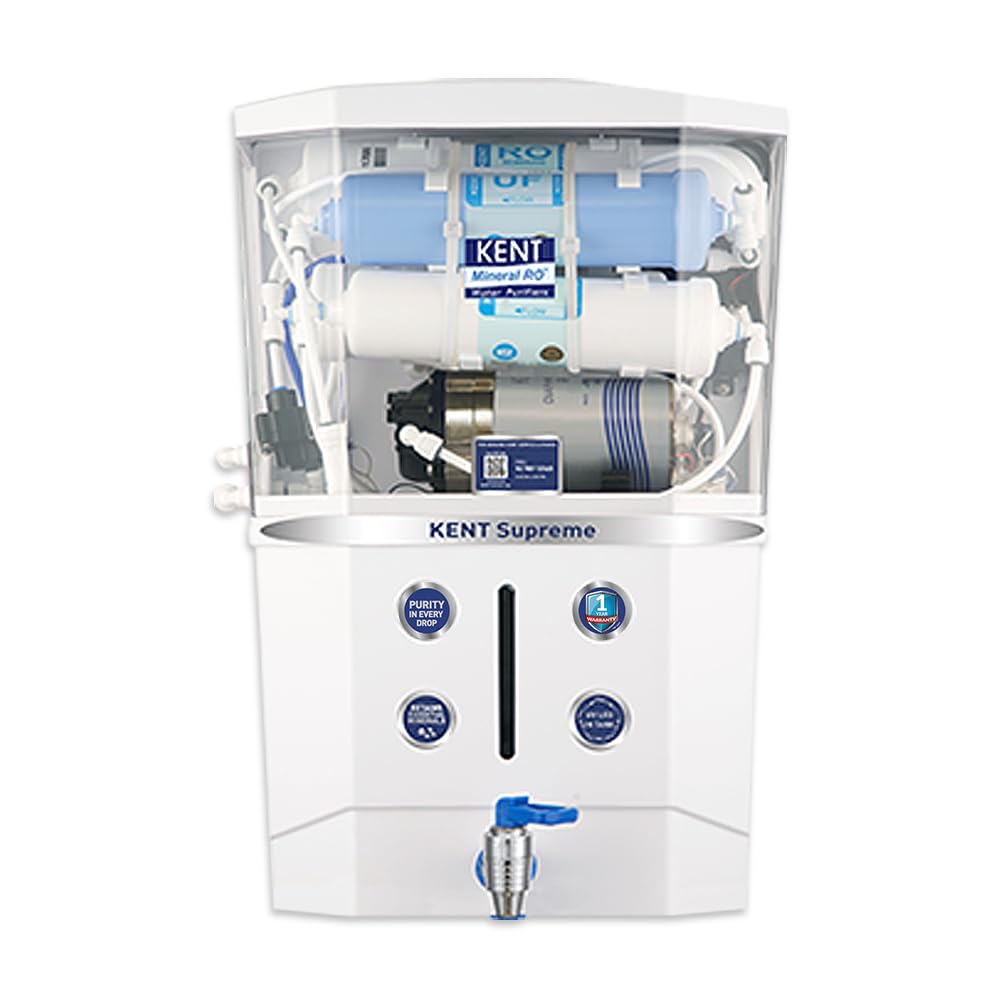 KENT Supreme RO Water Purifier | .0001 Micron RO Membran | RO + UF + TDS Control + UV LED Tank | 8L | 20 LPH | Ideal for Borewell/Tanker/Municipal Water | Largest Service Network
